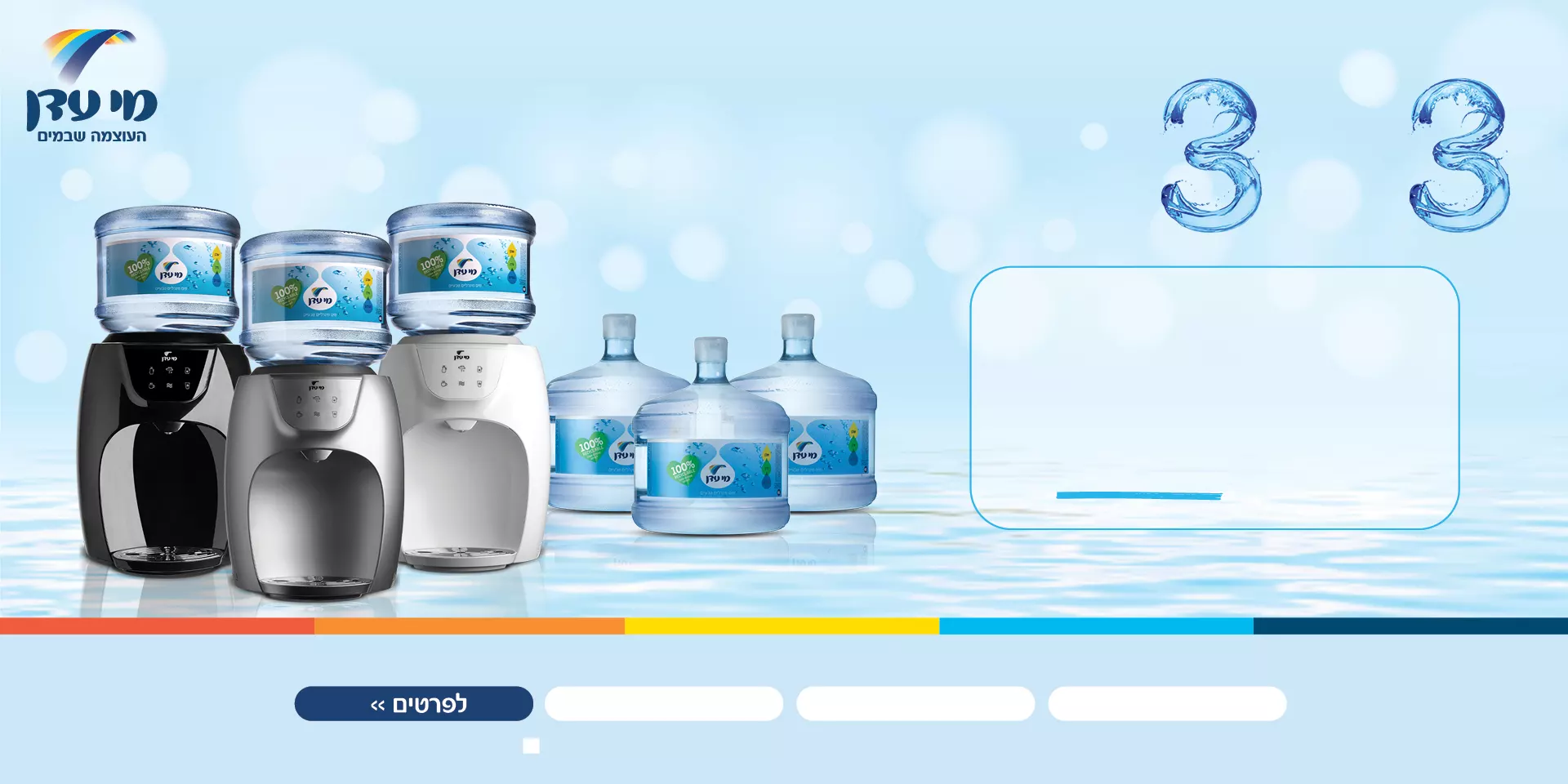 פתוח למצטרפים חדשים או ללקוחות חוזרים שעברו 18 חודשים מרגע התנתקותם. ההטבה פתוחה למצטרפים במסלול צריכה של 3 כדי 18.9 ל׳ בחודש. הטבת ההצטרפות כוללת זיכוי על עד 3 כדים בחודש למשך 3 חודשים. דמי התקנה חד פעמיים בסך 49 ₪.  בכפוף לתנאי ההצטרפות. חודש משמעו אספקת כדים אחת ל-28 יום. המבצע בתוקף בין התאריכים 1.3-31.3.2023. פיקדון לכד ₪21.